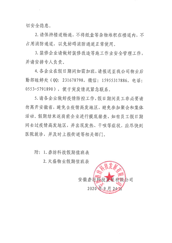 關(guān)于做好2020 年中秋、國(guó)慶假期安全工作的通知